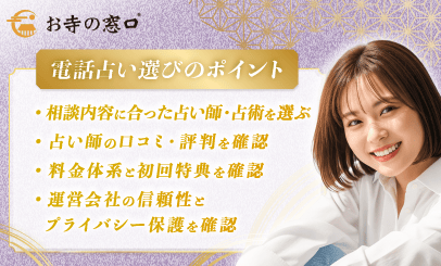 この記事では、全国328以上のお寺が登録する日本最大級のお寺ポータルサイトを運営する私たちが、電話占いサイトを客観的な評価で徹底比較しました。※ランキングの算出ロジックはこちら