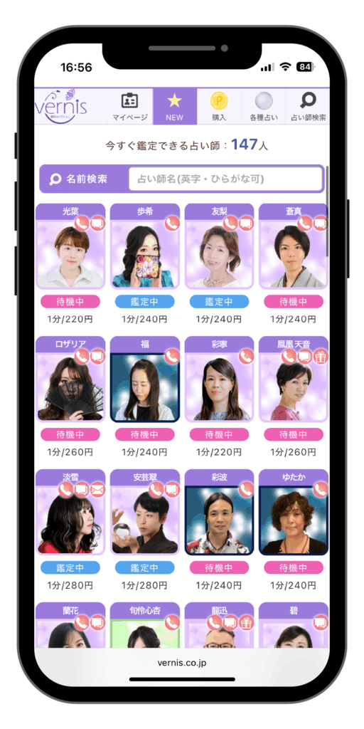 ヴェルニには清流先生など、恋愛相談が得意な占い師が多数在籍しており、復縁や不倫などの複雑な恋愛問題にも対応できます。相手の気持ちを詳しく視ることができる占い師が多いため、恋愛で悩んでいる方には特におすすめです。